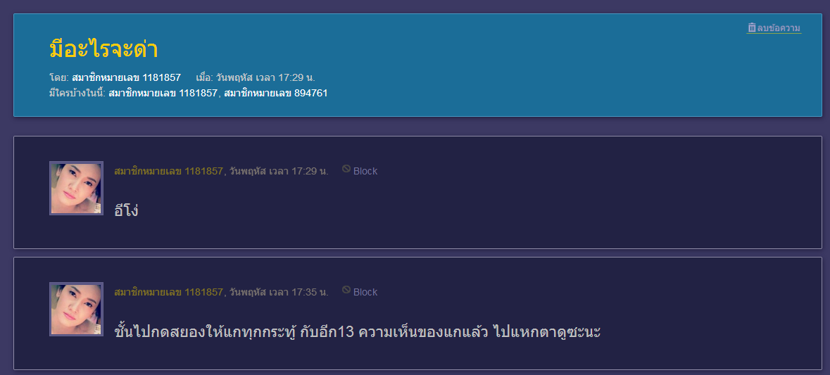 มีหลังไมค์มาด่าจาก 1181857 ค้างคาใจมากค่ะ อยากรู้จุดประสงค์