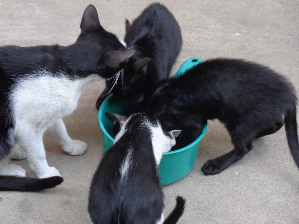 สายๆวันนึง นู๋ดำเหมียวหลังบ้านมาร้องขอข้าวกิน เราก็จัดการให้อาหารเม็ด