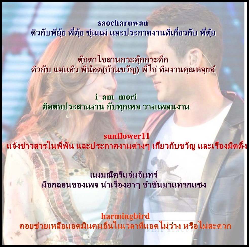 ขออนุญาตคุณ luckna เพิ่มชื่อติ่งกระโจมไปหน่อยนะคะ แต่จะมีตัวอักษรกำกับไว้ จะได้ทราบว่าเป็นชื่อที่เพิ่มมาในตอนเปิดกระโจมหรรษาค่ะ