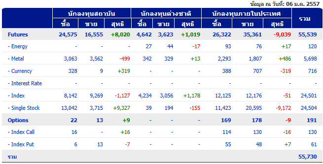 13/1/57 ต่างชาติ Long index future 648 สัญญา