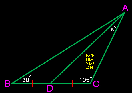 มุม CAD หรือมุม x = มุม BAC - มุม EAD = 45 - 15 = 30 องศา (แทนค่าจาก [3] และ [5])