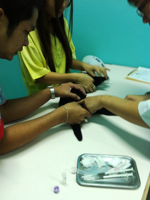 ผมกับแฟนก็เลยตัดสินใจ ให้แฟน เอาเจ้าดำตัวน้อยขึ้นแท๊กซี่ ไปที่ทำงานก่อน รอ รพ.สัตว์เปิด แล้วค่อยเอาไปให้หมอดู