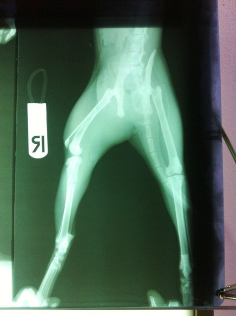 แฟนผม เข้าไปเคลียร์งาน ประมาณ 1 ชม. ก็พาเจ้าดำตัวน้อย ขึ้นแท๊กซี่ ไป รพ. สัตว์ลาดกระบัง คุณหมอเลยจัดการตรวจสอบทั่วไป ผลร่างกายแข็งแรง แต่ทว่า เมื่อจับเจ้าดำน้อย X-Ray ปรากฏว่า " เจ้าดำน้อย ขาหัก ตั้งแต่สะโพก ลงไป 3 ท่อนครับ