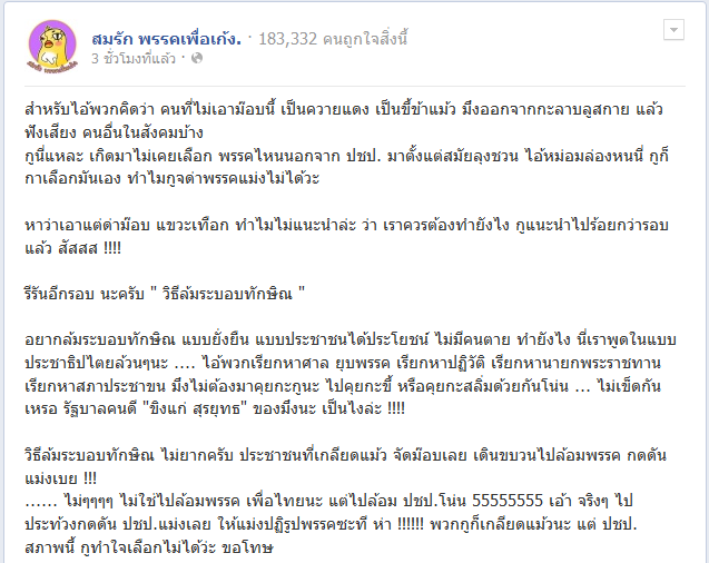 ทั้งๆที่ชาวบ้านส่วนมากเลือกเข้ามาเพื่อหวังให้ไปตั้งรัฐบาลร่วมกับพรรคเพื่อไทย เฮาละงึด .....