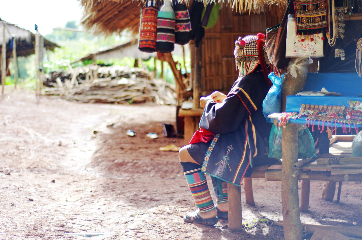 หมู่บ้านกระเหรี่ยงคอยาว เชียงราย แต่ในภาพน่าจะเป็นเผ่า อาข่า