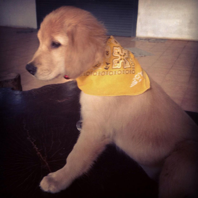 Brown Golden Retriever เกิด 28 ต.ค 56 นี่ห่างจากน้องไซ 10 วัน เตรียมฉีดวัคซีนเข็มที่ 2 อีกตัว เจ๊อ้วน เพราะกินเก่งสุด เยอะสุด แม้จะมาอยู่เป็นตัวที่ 2 แต่โดน เจ้า Bright แซงมาอยู่เป็นอันดับ 2 ในบ้าน เป็นโกล์เด้นขี้กลัวเบาๆ ตั้งแต่โดนเจ้า บลูข่ม และโดน จขกท ดุ แต่เจ้า บราวน์ไม่ค่อยสร้างปัญหา เว้นแต่รองเท้า จขกท ที่หนูบราวน์ชอบมว๊ากกกกกก ชอบแหย่ เจ้าแบล็ก และเล่นกับเจ้าไบร์ท