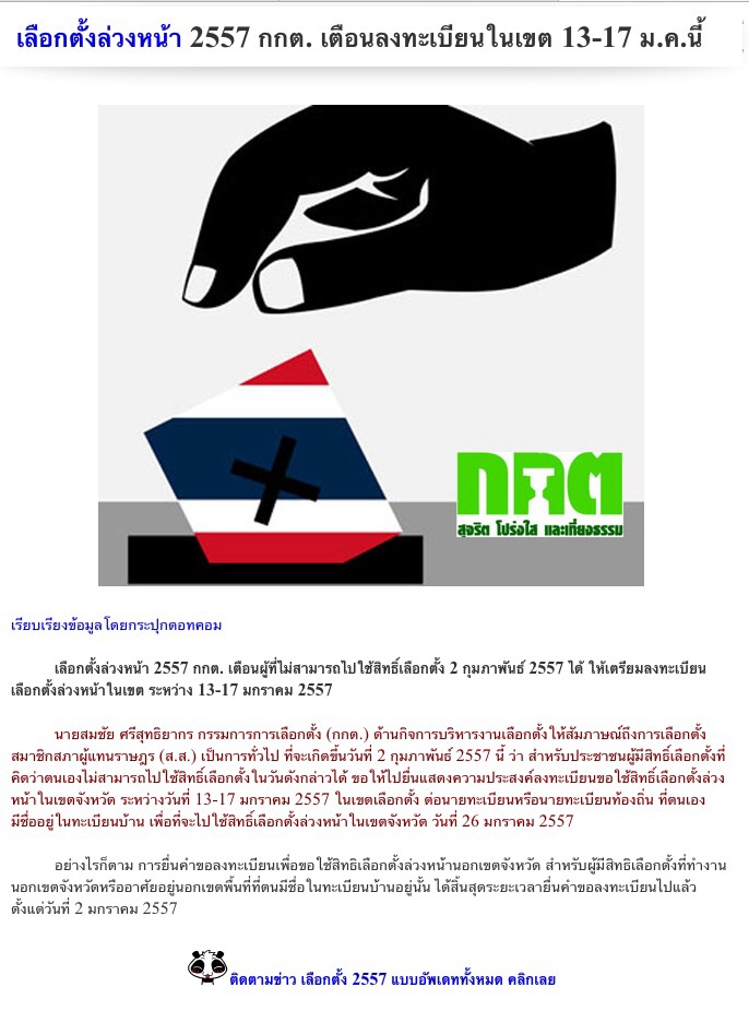 เลือกตั้งล่วงหน้า 2557 กกต. เตือนลงทะเบียนในเขต 13-17 ม.ค.นี้