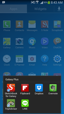 ปัญหาก็คือว่า ผมจะทำยังงัย ให้ shortcut app ที่ใช้บ่อยๆ เช่น Lines , Google Chrome ไปโผล่ อยู่บนหน้า app แบบรูปแรก (ของข้อที่ 2) โดยไม่ต้องคลิกผ่าน icon ของ Galaxy Plus และ Google ได้บ้างครับ ลองลาก ลองกด ดู แล้วทำไม่ได้ครับ มันต้องลากไปที่ Widget ที่หน้าแรกของโทรศัพท์ แต่ผมไม่ชอบครับ ดูรกหูรกตา