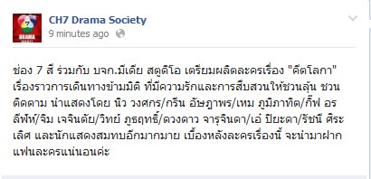 ปล... ดูจากรายชื่อนักแสดง น่าจะเป็นละครหลังข่าวเรื่องแรก ของ มีเดีย สตูดิโอ หลังจากช่องให้ทำละครเย็นมานาน แม้จะเป็นบริษัทลูกก็ตาม