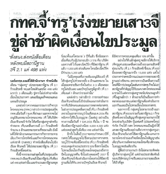 (TRUEโกหก) กทค.ชี้สถานีฐานคลื่น2100 TRUEMOVE H(เรียลฟิวเจอร์) มีเพียง 489 สถานีแต่โฆษณามี2000สถานี (ไม่ขยายยึดใบอนุญาติ)
