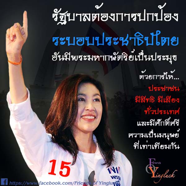 รัฐบาลต้องการปกป้องระบอบประชาธิปไตยอันมีพระมหากษัตริย์เป็นประมุข ด้วยการให้ประชาชน มีสิทธิ มีเสียง ทั่วประเทศ และมีศักดิ์ศรีความเป็นมนุษย์ที่เท่าเทียมกัน