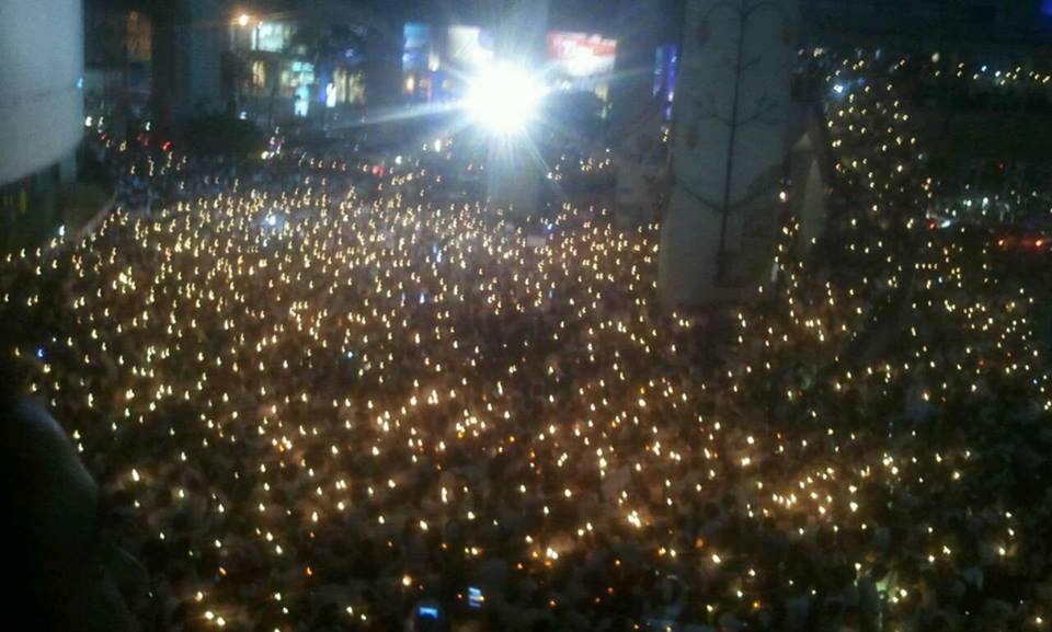 แสงเทียนสันติภาพ เรียกร้องเลือกตั้ง สว่างกลางกรุงเทพฯ อีกครั้ง #กรวย #voicenews pic.twitter.com/ArvmhVA6yv https://twitter.com/weeranan/status/467272304833986561/photo/1