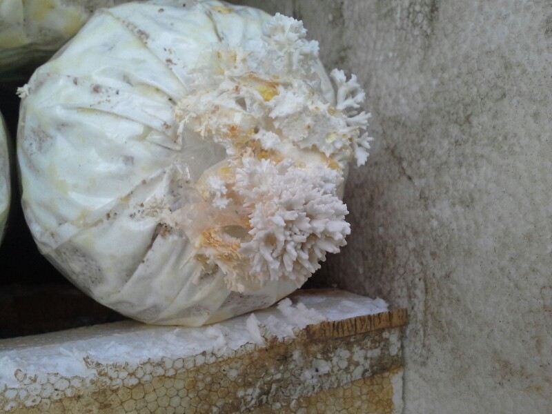 เปิดก้อนเชื้อเห็ดนางฟ้ามา 3 วันแล้วยังไม่ออกดอกเลย ภายในก้อนเชื้อก็เป็นราสีเหลืองๆ แล้วเหมือนไอน้ำเกาะที่ถุงทำไงดีค่ะ