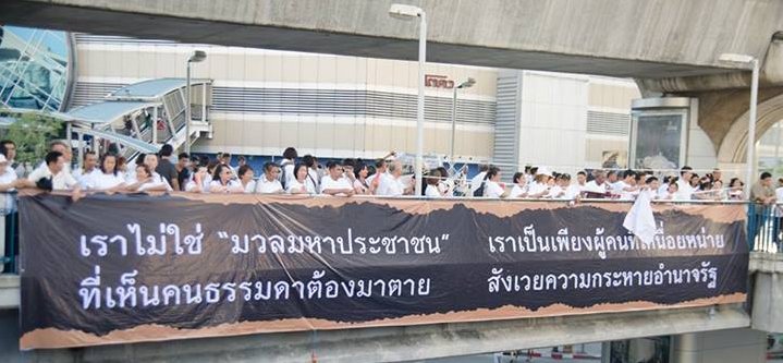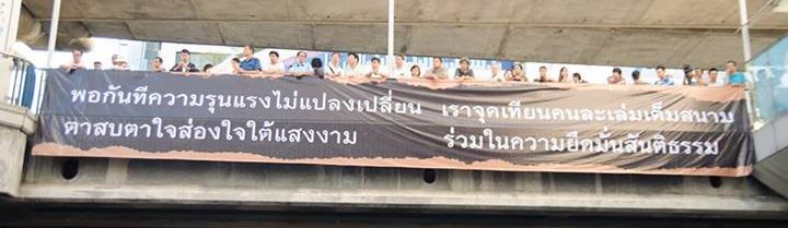 แล้วถามก่อนว่าถ้าเป็นสีแดง สีเหลือง สีขาว หรือหลากสี มันจะผิดหรือเสียหายอะไรถ้าเขาใช้วิธีการที่สันติและสิ่งที่เขาเรียกต้องเป็นเรื่องที่ถูกต้อง?