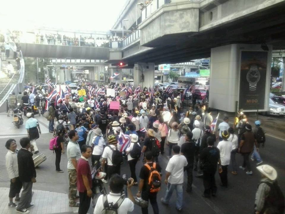 ทิศทางของม๊อบผ่านไปทางสี่แยกปทุมวัน