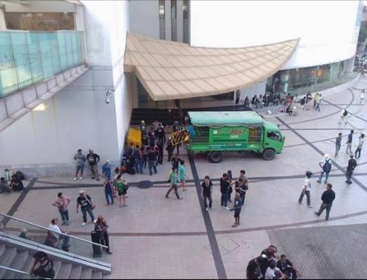 น่าดีใจแทนคนกรุงเทพ ที่ได้ผู้ว่าดีแบบนี้ รถมาแล้ว ตีวงเพื่อวกเข้าหน้าหอศิลป์ จอดหน้าหอศิลป์แล้ว ผู้ชุมนุมขนแผงกั้นสีเหลืองลงจากรถ ผู้ชุมนุมเอามากั้นมางขึ้น ผู้ชุมนุมเอามากันพื้นที่โดยรอบเอ