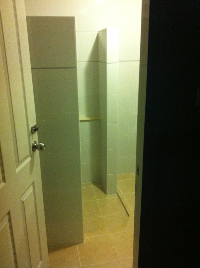 ในห้องน้ำ มีการก่อปูนดังรูป ไม่ทราบว่าจะติดตั้งราวม่านอย่างไร มีราวสำเร็จรูปหรือไม่