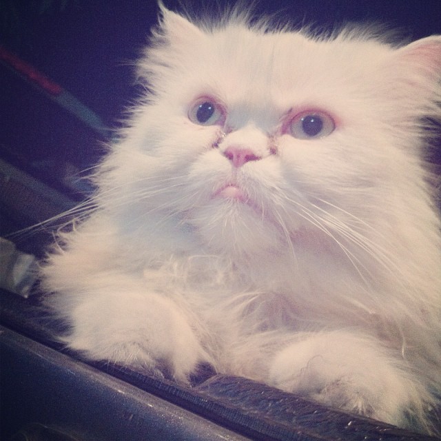 ตัวนี้ชื่อ กะทิ ค่ะ เปอร์เซียขาว ไม่ใช่แมวหลง เป็นแมวของข้างบ้านเลี้ยงไว้ แรกๆก็ทนุถนอม แต่ตอนนี้ เจ้าของเลิกเห่อแล้ว สกปรกมากเลย ต่างจากแมวหลงลิบลับ นางชอบเดินเข้ามาจ้องจิ้งจก+สำรวจบ้านเราบ่อยๆ บางครั้งนางก็จับหนูใบ้านเราแล้วเอาไปปล่อยไว้ในบ้านตัวเอง 555555
