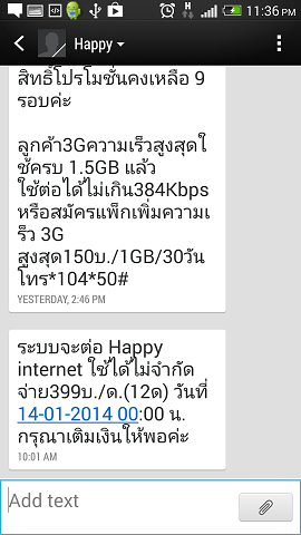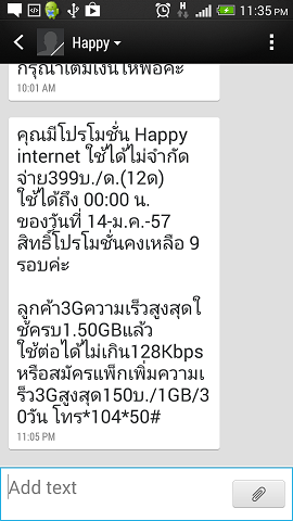 ผมสมัครแพ๊กเกจ Happy Internet ใช้ได้ไม่จำกัด จ่าย 399 บ./เดือน เมื่อปลายปีที่แล้ว