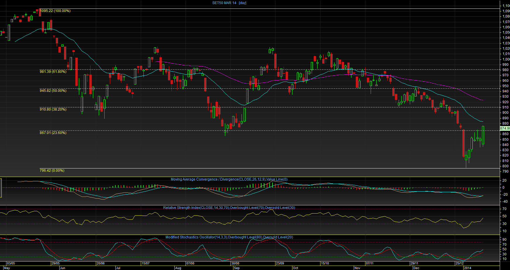 กลับขึ้นมาได้เรื่อยๆ จนทะลุ และ ปิดยืนเหนือ 867 Fibo 23.6% ได้สำเร็จ ทำให้ภาพรวมกลับมาดูสวยงาม มีโอกาสไปต่อสูงมากๆ