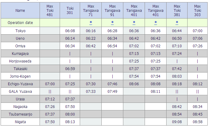 จาก Omiya ไป Gala Yuzawa เราต้องขึ้นรถไฟขบวนที่เขียนว่า Max Tanigawa 71 หรือ Max Tanigawa 91 หรือ Max Tanigawa 401 ได้แค่นี้ ถูกต้องไหมคะ