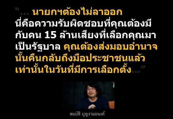 ประกาศบนเวที ว่าจะสถาปนาระบอบใหม่ สั่งการไม่ให้นายกฯรักษาการตามรัฐธรรมนูญ ไม่เอาเลือกตั้ง แบบนี้มันปฏิเสธรัฐธรรมนูญ ปฎิเสธประชาธิปไตย ปฏิเสธพระราชอำนาจ ชัดเลยๆครับ ... ล้มทั้งประชาธิปไตย ล้มทั้งพระรา