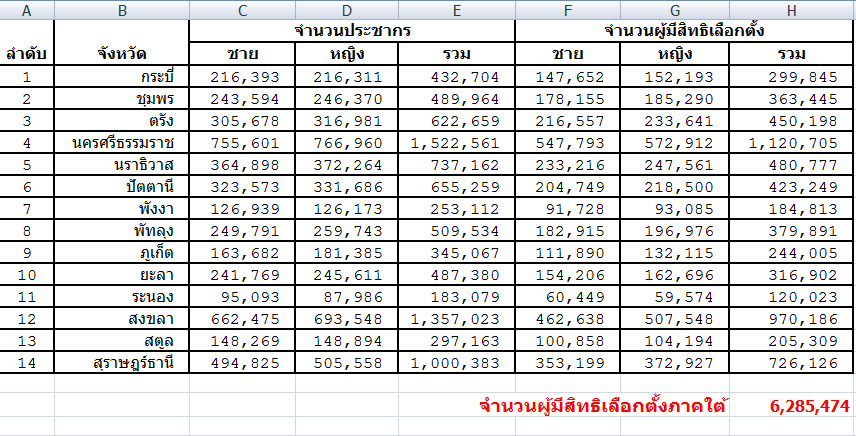 จำนวนผู้มีสิทธิเลือกตั้งในภาคใต้ 6,285,474 คน นี้ขนาดยังไม่รวมกับ กทม
