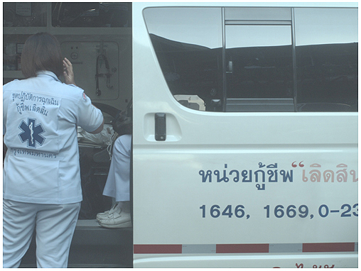ซึ่งจะมีรถพยาบาลและรถหน่วยกู้ภัยจอดแสตนด์บายอยู่หลายคัน