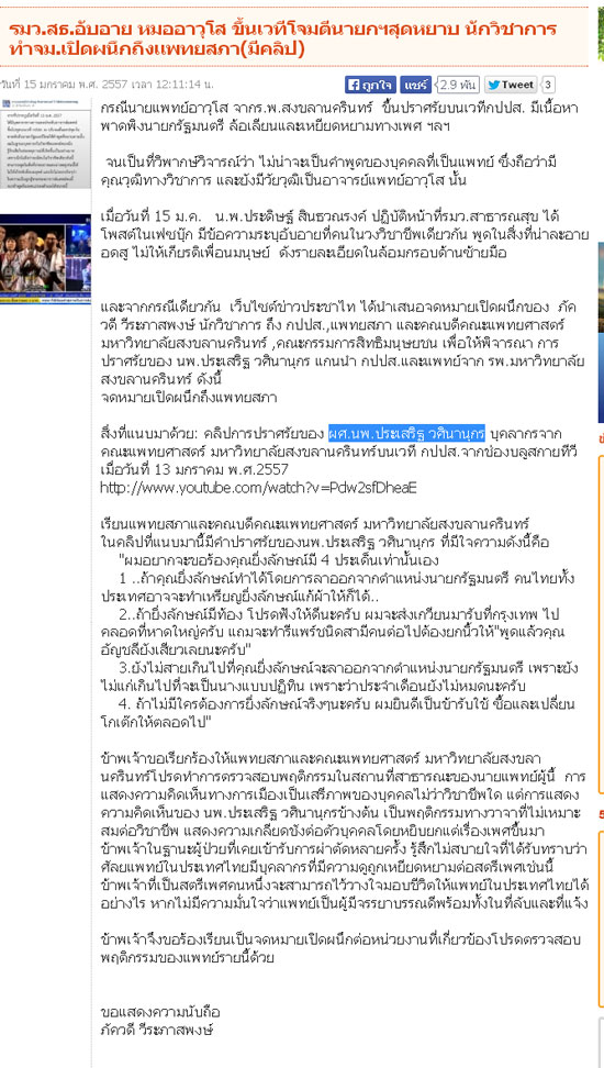 ประเด็นของ นพ.ประเสริฐ วศินานุกร กำลังได้รับการวิพากษ์ วิจารณ์ แล้ว ติดตามครับ