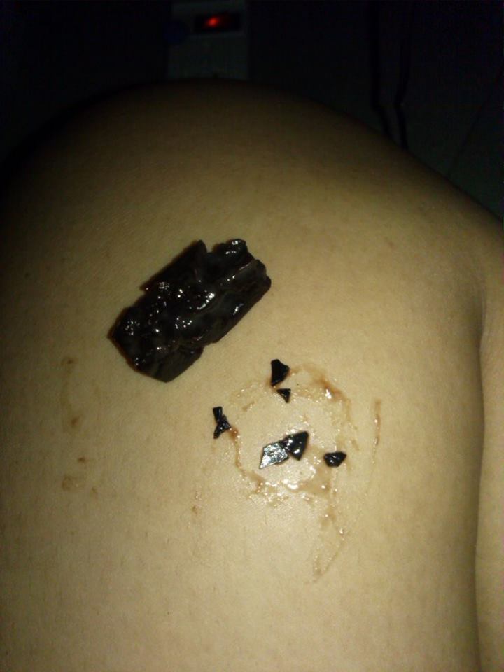 เมื่อวันที่14 มกราคม 2557 ได้ไปซื้อกล้วยกวนจาก7-11 ก็กินไปเม็ดที่3 รู้สึกว่ากัดไปโดนอะไรบางอย่างเลยคายออกมาดู เป็นเศษสีดำๆ ตอนแรกคิดว่าเป็นเศษพลาสติก เลยถ่ายรูปส่งข้อความไปในเพจของนายจอม