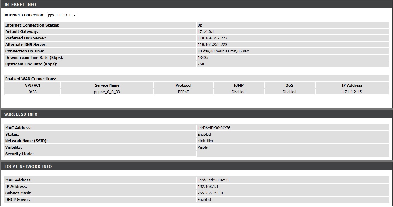 รุ่น D-Link 2640 BT (สเตตัส สัญญาณไฟที่แสดง ปกติทุกอย่างครับ)