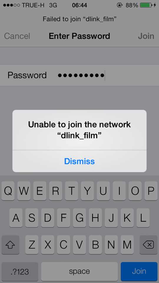 (สองรูปล่าง เป็นการ Sceen หน้าจอ iPhone ตอน Connect WiFi เห็นสัญญาณปกติ แต่ใส่ Password ไม่ว่าจะถูกหรือผิดก็จะขึ้นตามรูปครับ)
