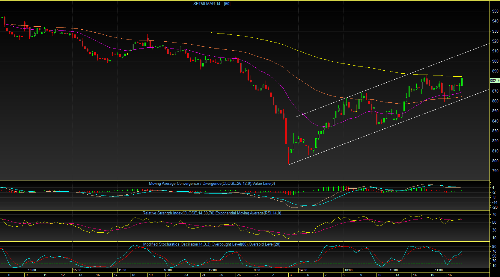 S50H14 TF Day : เมื่อวานนี้ สามารถ Rebound กลับขึ้นมายืนเหนือ 867 Fibo 23.6% ได้อีกครั้ง พร้อมกับ พุ่งขึ้นไปทะลุ EMA25 วัน