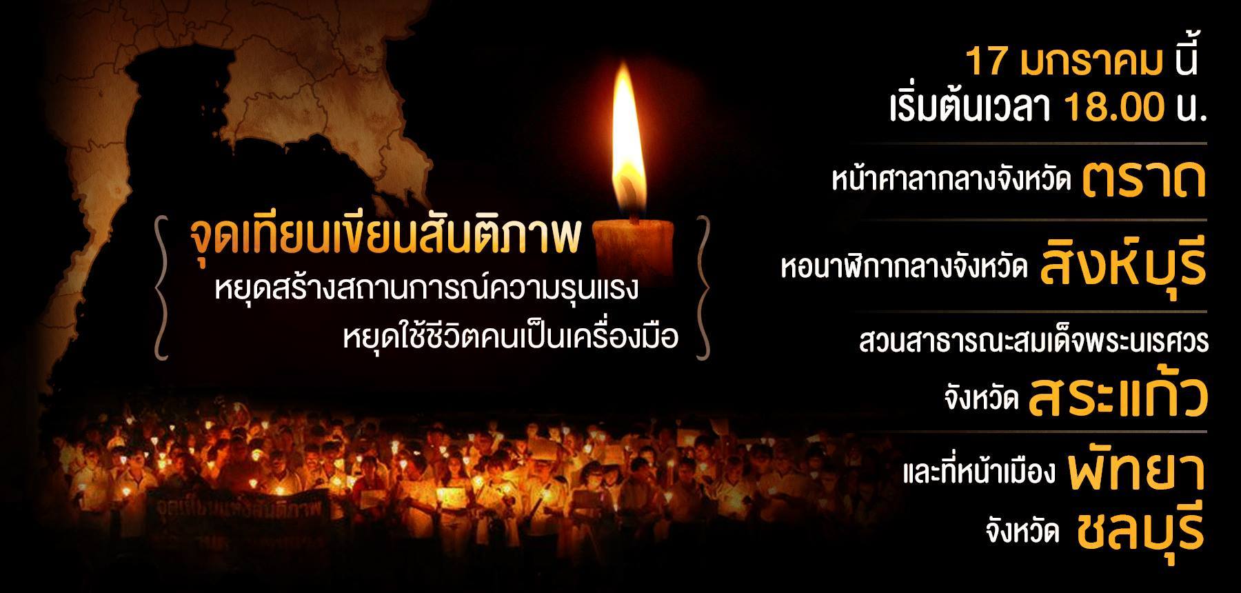 จุดเทียนเขียนสันติภาพ หยุดสร้างสถานการณ์ความรุนแรง วันที่ 17 ภาคตะวันออก 6 โมงเย็น ตราด สิงห์บุรี สระแก้ว พัทยา