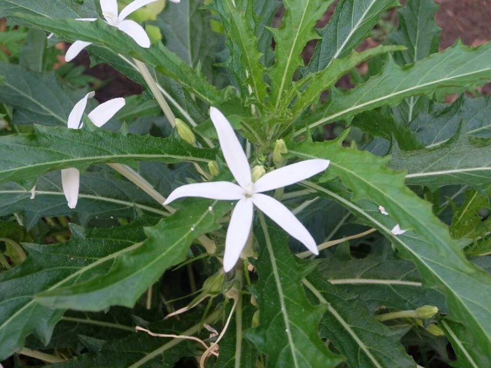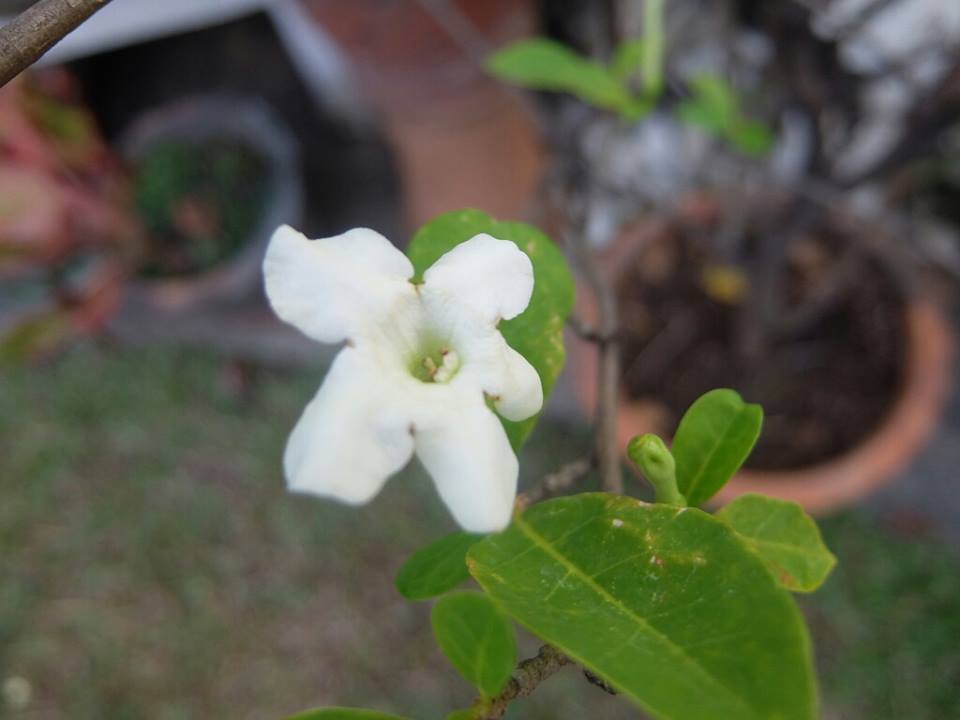 ป้าไปขอคนข้างบ้านที่สุพรรณมาปลูกต้นนึง ตอนแรกมีแต่ใบเขียวๆ เราก็นึกว่าใบเตย😅😝 ปลูกมาสักพักออกดอกสีขาวสวยเลย ทีนี้เดือดร้อนเราเลย ป้าอยากรู้ว่าคือต้นอะไร จะหามาปลูกเพิ่ม (ไม่กล้าไปขอคนข้างบ้านอีก ไกลด้