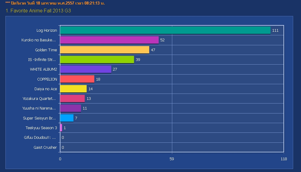 ประกาศผลโหวต "ห้องการ์ตูน Favorite Anime Fall 2013" รอบแรก