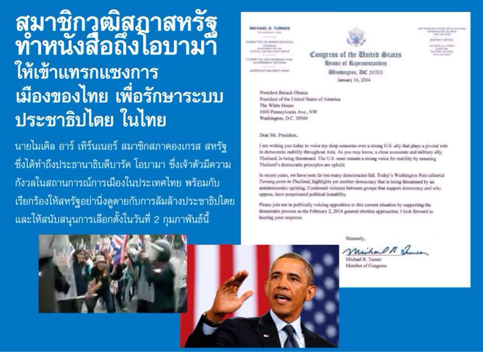 สมาชิกวุฒิสภาสหรัฐทำหนังสือถึงโอบามา ให้เข้าแทรกแซงการเมืองไทย เพื่อรักษาระบบประชาธิปไตยในไทย