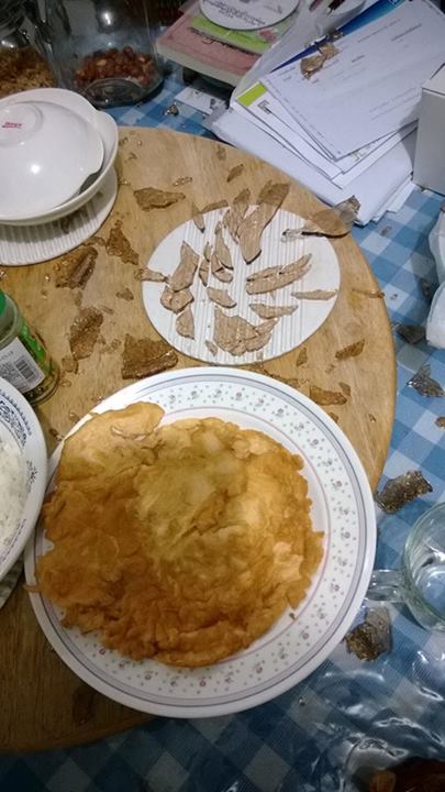 ในรูป ตรงที่มีเศษแก้วนั่น ตอนแรกคือจานวางอยู่ พอมันระเบิดเลยเอาไข่เจียวไปวางไว้อีกจานนึง