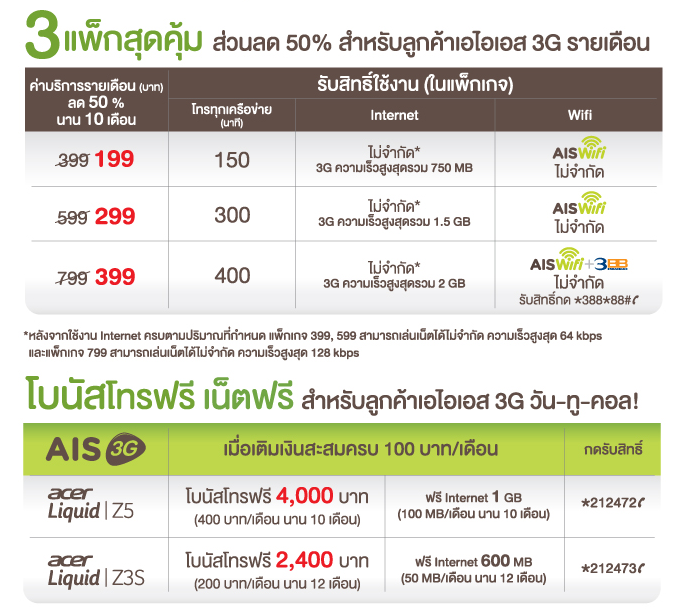 ต้องการนำไปใช้ ตจว.ในพื้นที่่่่่่่นึงมีสัญญาณแค่AIS 3G เป็นเวลา3-7วัน ก็เลยอยากได้แพ็คเกจราคาถูกๆเน็ตไม่ต้องแรงมาก ความเร็ว384kแต่เล่นได้ไม่จำกัด