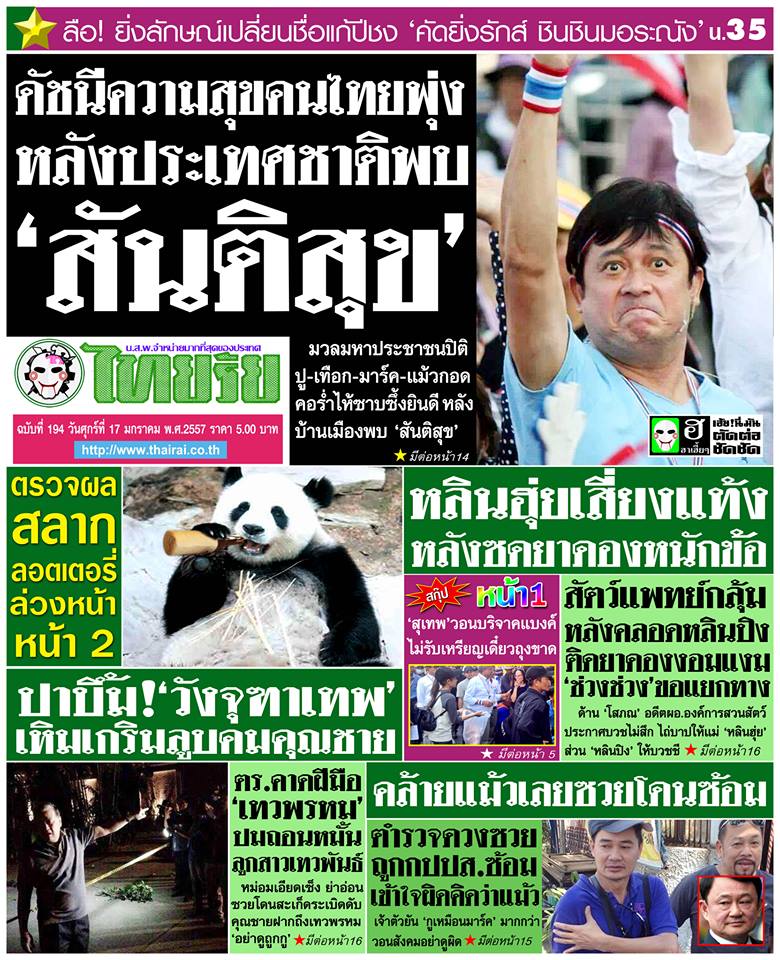 หนังสือพิมพ์บอกว่าดัชนีความสุขคนไทย เพิ่มขึ้นแล้วครับ