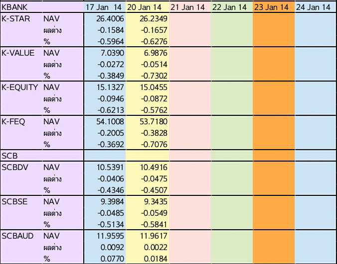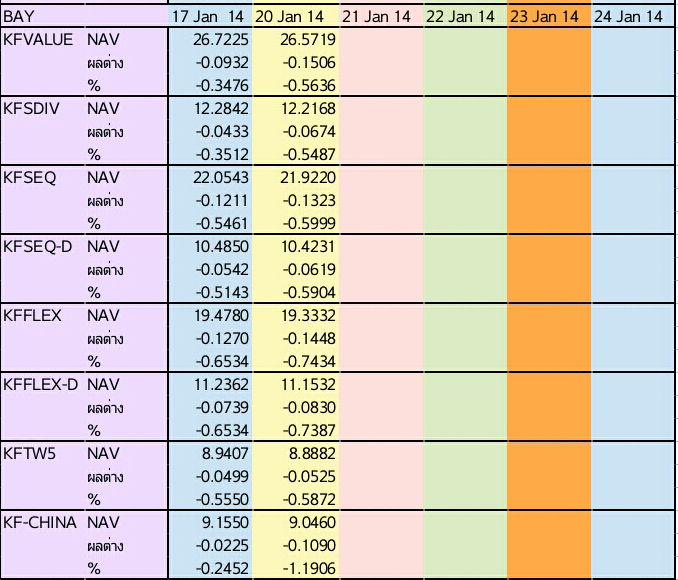 [กระทู้มุงกองทุน] รายงานNAV ประจำวันจันทร์ที่ 20 มกราคม 2557