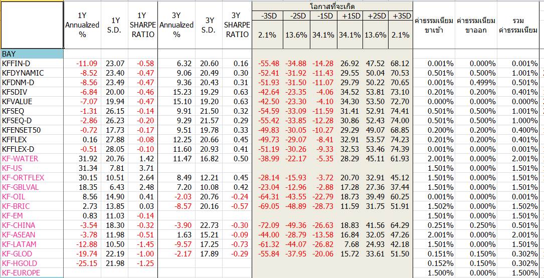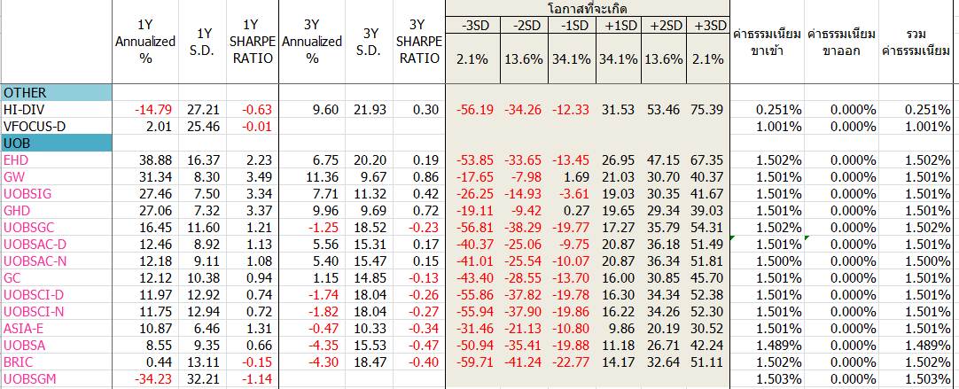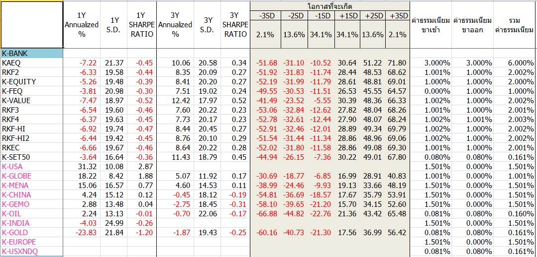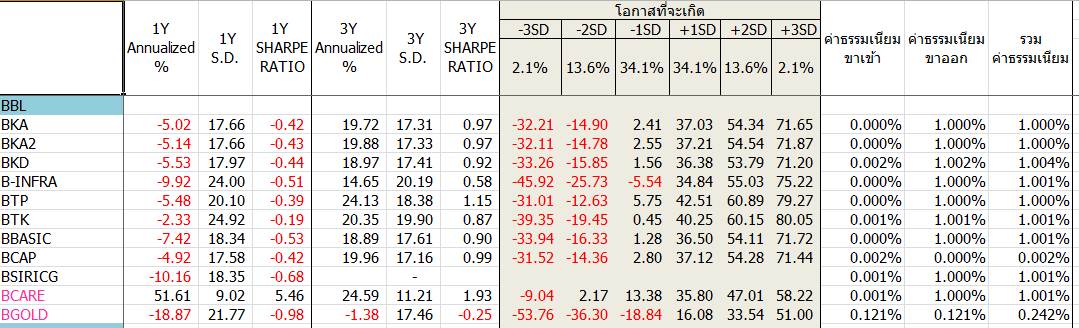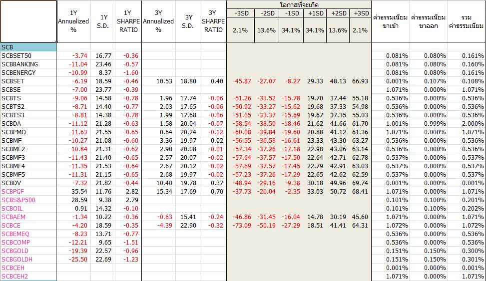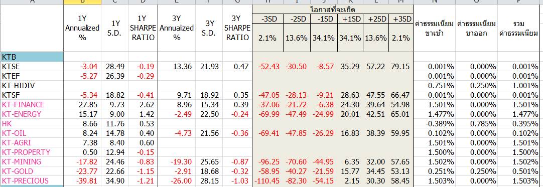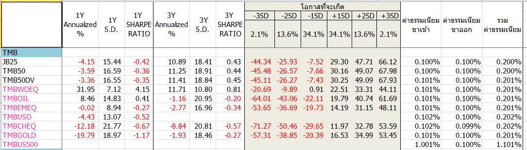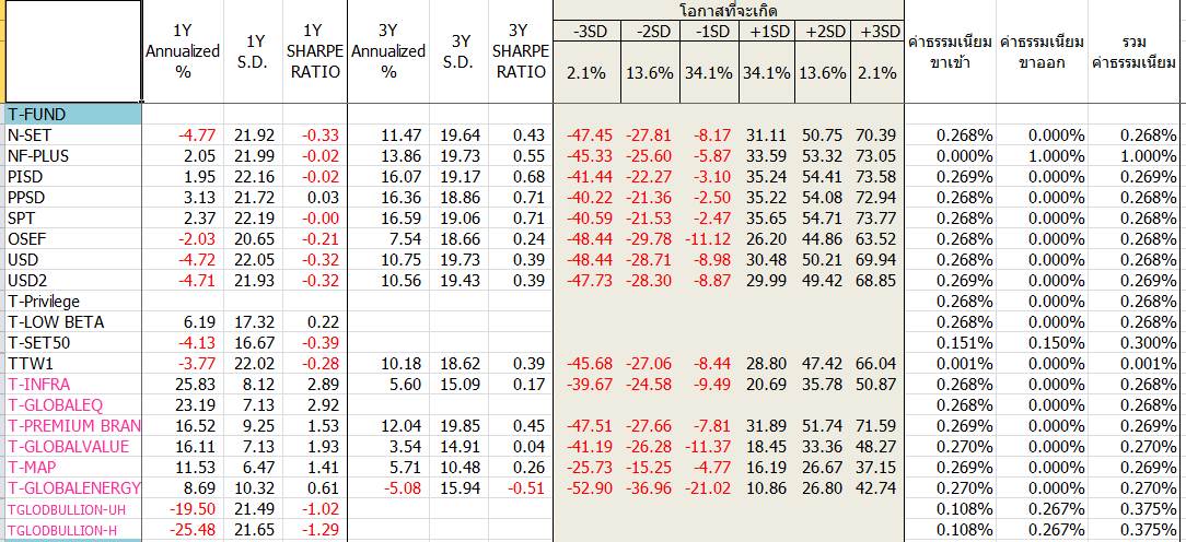 ตารางเลยเหลือแค่ ผลตอบแทน +ค่าเบี่ยงเบนมาตรฐาน+ค่าธรรมเนียม