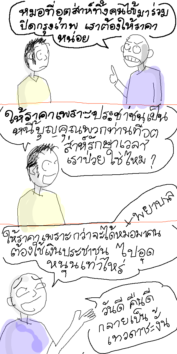 คนเรามีค่าไม่เท่ากัน เราควรให้ราคาหมอพยาบาลที่อุตส่าห์เสียสละทิ้งคนไข้ออกมาร่วมปิดกรุงเทพ