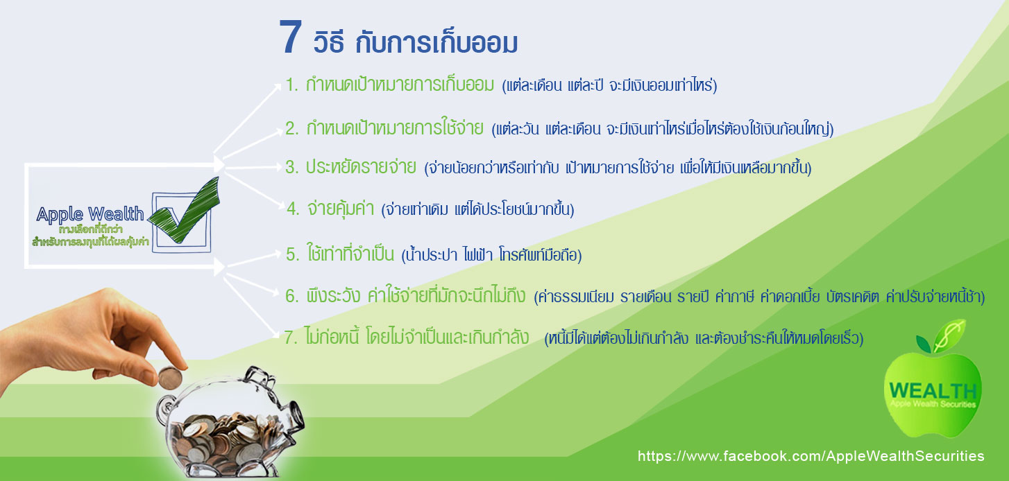 1. กำหนดเป้าหมายการเก็บออม (แต่ละเดือน แต่ละปี จะมีเงินออมเท่าไหร่)