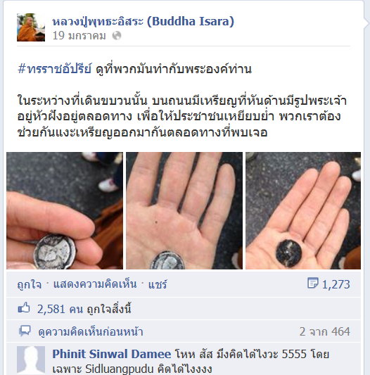 ไม่ทราบพระเป็นผู้โพสต์ หรือลูกศิษย์ทีมงาน ??? ทำไมมหาเถระสมาคมยังไม่ดำเนินการ แค่นี้วงการสงฆ์ไทยก็อื้อฉาวไปถึงไหนต่อไหนแล้ว