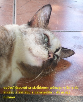 ดองแม่สีนวลไว้ซะนาน น้องทำหมันแล้ว อายุประมาณ 1 ขวบ อดีตแมววัด สุขภาพแข็งแรง นิสัยดี (เรียบร้อยดี)