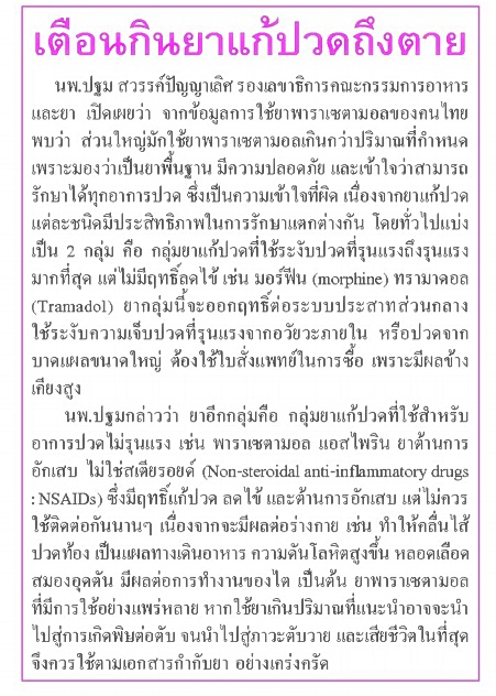 ++++ เตือน กินยาแก้ปวด ถึงตาย ++++
