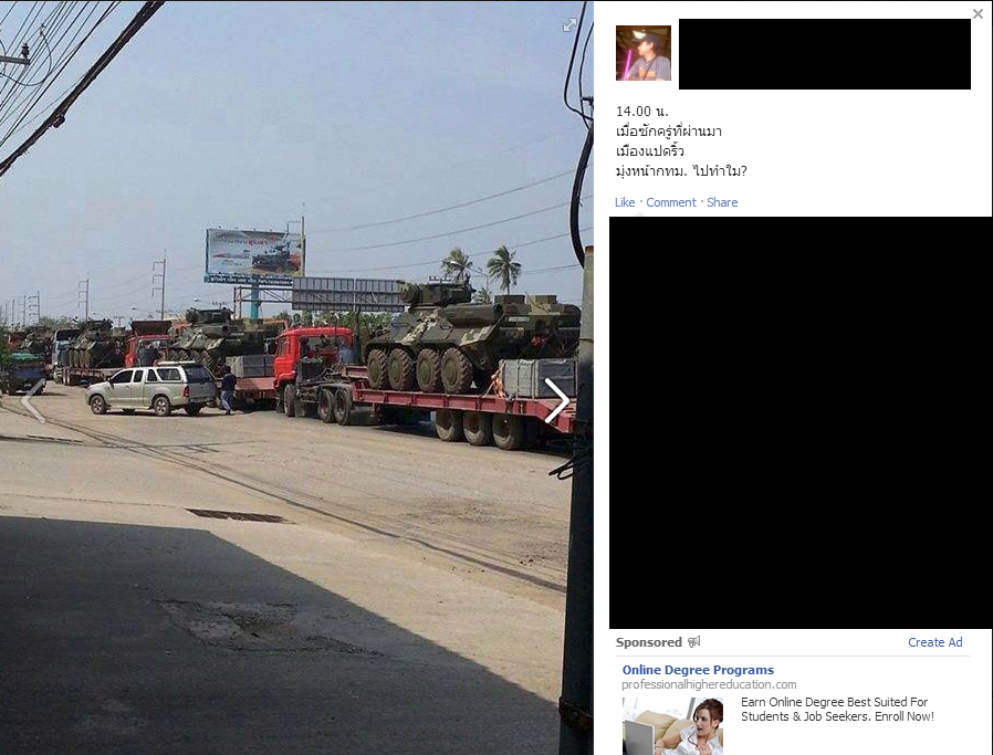 วันที่ 06 มกราคม พ.ศ. 2557 เวลา 11:46 น. ข่าวสดออนไลน์ ทบ.แจง 9 ม.ค. เคลื่อนย้ายยุทโธปกรณ์เข้ากทม.จัดงานวันเด็ก วอนปชช.อย่าเชื่อข่าวลือปฏิวัติ เมื่อวันที่ 6 ม.ค. ที่กองบัญชาการกองทัพบก พ.อ.หญิงศิร