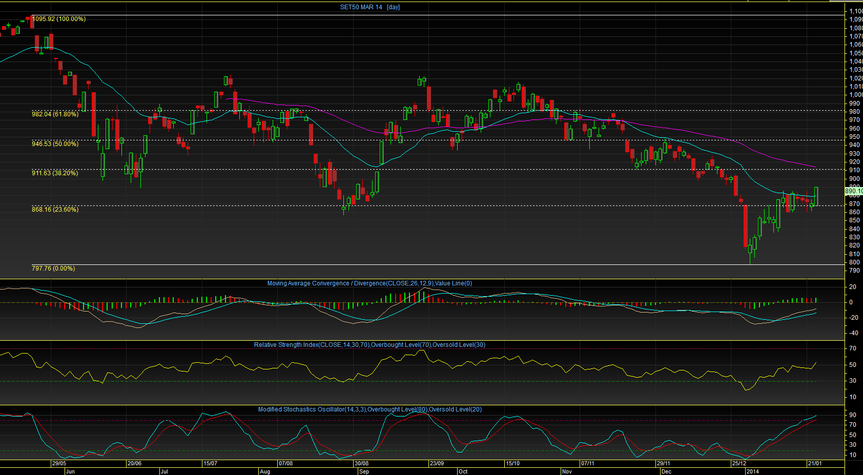 S50H14 TF Day เมื่อวานนี้ มีบางช่วงลงไป test 867 Fibo 23.6% แล้วไม่หลุด และฟื้นตัวใต่ระดับขึ้นมาได้เรื่อยๆ