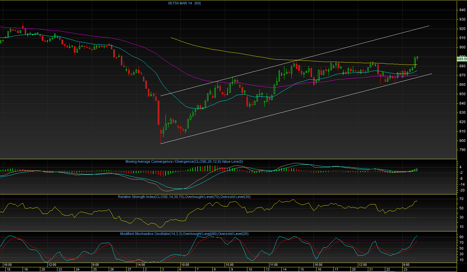 หลังจากที่ไม่ผ่านมาหลายครั้ง และสามารถปิดตัวยืนเหนือ ได้สำเร็จ แนวโน้มยังคงเป็น "Sideway up" และวันนี้มีโอกาสที่